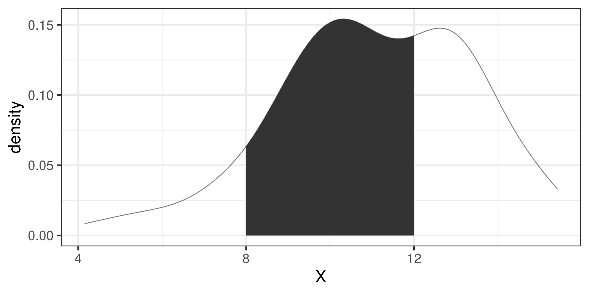 The probability \(P(a \le X \le b)\) is given by the area under the density curve!