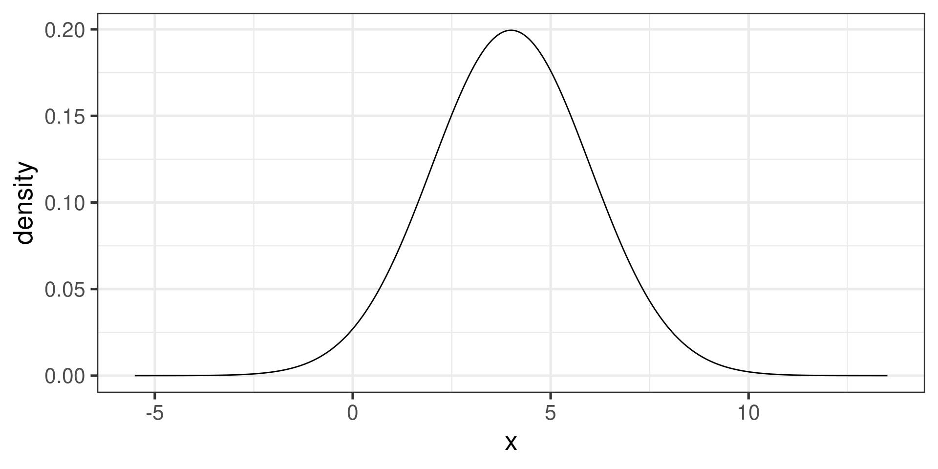 gf_dist("norm", params=c(mean = 4, sd = 2))gf_dist("norm", params=c(mean = 4, sd = 2)) |>