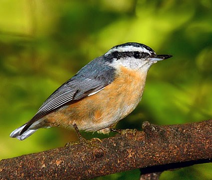 Mannan and Meslow (1984) studied red-breasted nuthatch foraging behavior in a managed forest in Oregon. In the forest, 54% of the canopy volume was Douglas fir, 40% was ponderosa pine, 5% was grand fir, and 1% was western larch. They made 156 observations of foraging by red-breasted nuthatches; 70 observations (45% of the total) in Douglas fir, 79 (51%) in ponderosa pine, 3 (2%) in grand fir, and 4 (3%) in western larch.